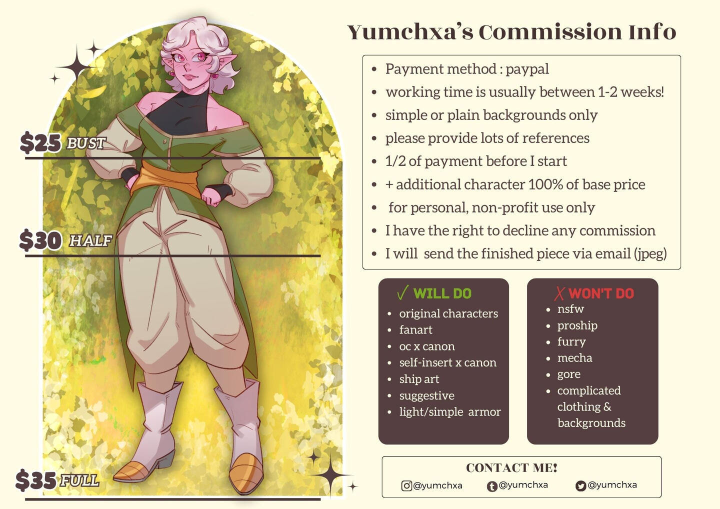 note: please check my bio if commissions are open before reaching out, and if you have any questions or are interested in a commission, feel free to shoot me a DM! <3